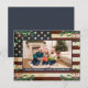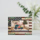 Send Merry Christmas greetings to friends and family with this unique USA American Flag Christmas Card - USA American flag design vintage red white blue design with holly and berries. Personalise with your favourite photo, message and family name. This patriotic Christmas card is perfect for military families, veterans, patriotic family and veteran service department christmas cards. COPYRIGHT © 2020 Judy Burrows, Black Dog Art - All Rights Reserved. Patriotic Christmas Photo Vintage American Flag Postcard