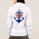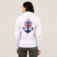 A Women's White Zipper Patriotic Hoodie With Red White And Blue Coquette Bow and Anchor On Back