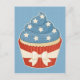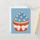 This patriotic design features a festive little 4th of July cupcake on a matching blue pinstripe background. The vanilla flavoued cupcake sits in a red paper cup with a perfectly shaped cream coloured bow tied around it. Blue frosting sits on top covered with star shaped sprinkles. This bold yet simple design with the colours red, white and blue makes for a stylish gift to celebrate this American holiday!