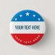 Red, White & Blue with Editable Text. Show your support or make a bold statement with this customisable patriotic button featuring a classic red, white, and blue design with stars and editable text fields. Perfect for political campaigns, patriotic events, rallies, or celebrations, this button allows you to personalise it with your name, slogan, or message. Whether promoting a candidate or commemorating Independence Day, this button is a standout accessory with a timeless American style.