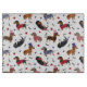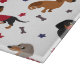 Patriotic dachshunds dressed in red white and blue with stars, stripes and dog bones on a white background.