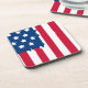 Hard plastic drink coaster shown in a patriotic July 4th flag print.
