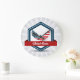 A bold wall clock featuring an American‑flag eagle inside a navy hexagon with a “United States” banner—perfect for adding patriotic flair to any room.