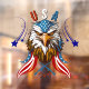 Patriotic eagle, crossed rifles, red, white, blue stars n' stripes banners window cling or decal