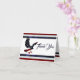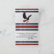 This patriotic Veteran Thank You Card features an eagle shaped flag on the front & top inside with a quote on the bottom inside with red, white & blue borders throughout. The ribbon borders, the eagle on the inside and the wording can all be changed or deleted as you prefer.