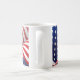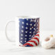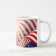 This coffee mug is shown with a image print of a patriotic USA Flag and fireworks.