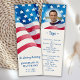 USA American Flag Memorial Funeral Prayer Bookmark. This military memorial prayer bookmark card features a United Staes of America Flag in a modern red white blue watercolor design . Front "In Loving Memory" Personalise this military funeral prayer card with your loved ones photo, name & dates, and sentiment. Back ~ 'Taps' Poem, please reach out if you would like a design with a specific poem other than. This American Flag prayer card is a treasured keepsake, military funeral services, and veteran memorial service or celebration of life. In Loving Memory Military Memorial American Flag Prayer Cards. COPYRIGHT © 2020 Judy Burrows, Black Dog Art - All Rights Reserved. Patriotic Flag Veteran Memorial Prayer Bookmark