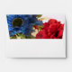 This red white and blue floral envelope is fitting for Father’s Day, Independence Day, or summer events in general! Look for the matching cards that are for Father’s Day and for the Fourth of July! These colours are bright, celebrating summer, and patriotic as well. They are made with photos of flower arrangements at our church. Blessings..