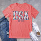 Show off your patriotic pride with a soft red tee that blends classic Americana with a fun floral twist. With bold “USA” lettering filled with red, white, and blue flowers and “EST. 1776” beneath, this shirt is perfect for summer BBQs, fireworks, and celebrating freedom in style.