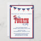Illustrations of a red, white and blue party banner with a star accent and a red, white and blue top hat. This fourth of July invitation is a unique, fun and creative invite to give your family and friends to a cookout.
