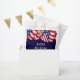 This design features red, white, and blue bunting across the top and stars along the bottom. Personalise the text, remove it, or click customise to select a font style, size, and colour you like. Great for patriotic holidays or all summer.
