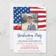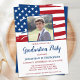 Patriotic American Flag Military Graduation Invitations. Invite friends and family to your patriotic graduation party with this USA flag patriotic graduation invitation. USA American flag design, red white and blue stars and stripes. This military graduation invitation is also perfect for military retirement invitations, change venue in personalization. See our collection for matching military graduation gifts,party favors, and supplies. COPYRIGHT © 2021 Judy Burrows, Black Dog Art - All Rights Reserved. Patriotic Graduation American Flag Photo Military Invitation