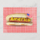 Hot dog on red and white gingham for 4th of July BBQ party or any other patriotic American holiday.