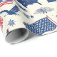 A bold and dynamic pattern showcasing the essence of American pride. Featuring the Statue of Liberty, the USA map, the American flag, and the majestic bald eagle, this wrapping paper captures iconic U.S. symbols in a cohesive and patriotic layout. Perfect for celebrating national holidays or expressing national spirit with a classic Americana touch.