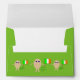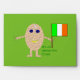 This envelope features a funny cartoon of an egg with arms and legs. The egg has arms and legs and a small crack in its head exposing the white inside. It has blue eyes with a black pupil and a big smile where the yolk of the egg can be seen. The eggshell looks rough. This patriotic Irish egg proudly holds its flag and there is green text below the flag that reads "it's all about the craic". This fun design is great for Saint Patricks Day or for proud Irish men and women. There is customisable text on the back so you can personalise it. There is room on the front to affix postage. This envelope will hold any A7 sized greeting card. .