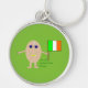 This fun keychain features a funny cartoon of an egg with arms and legs. The egg has arms and legs and a small crack in its head exposing the white inside. It has blue eyes with a black pupil and a big smile where the yolk of the egg can be seen. The eggshell looks rough. This patriotic Irish egg proudly holds its flag and there is green text below the flag that reads "it's all about the craic". This fun design is great for Saint Patricks Day or for proud Irish men and women.