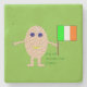 This awesome Stone Coaster features a funny cartoon of an egg with arms and legs. The egg has arms and legs and a small crack in its head exposing the white inside. It has blue eyes with a black pupil and a big smile where the yolk of the egg can be seen. The eggshell looks rough. This patriotic Irish egg proudly holds its flag and there is green text below the flag that reads "it's all about the craic". This fun design is great for Saint Patricks Day or for proud Irish men and women.