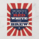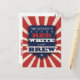 Announce your patriotic party with this bright, eye-catching design. The front of the postcard is comprised of a navy blue shield shape set against a red and creamy-white starburst stripe pattern. Inside the shield are the words "Three cheers for the red white and brew" along with creamy-white stars and a modern ribbon banner. The reverse side has plenty of space for multiple lines of custom text. Use the easy provided templates to personalise the postcard to suit your event. Perfect for summer barbecues, political or election day parties, or July 4th celebrations.