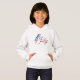 This kids pullover hoodie is shown in White with a USA Flag July 4th graphic print, perfect for July 4th holiday.