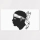 Crafted with meticulous attention to detail, these labels celebrate Corsican heritage and cultural identity. The design prominently features the iconic flag of Corsica, known for its white Moor's head with a bandanna on a field of red and white stripes.
