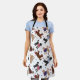 Patriotic labradoodles dressed in red white and blue with stars, stripes and dog bones on a white background.