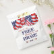 This design features red, white, and blue bunting across the top and stars along the bottom with "Land of the FREE because of the BRAVE" message. Great for patriotic holidays or all summer.