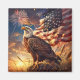 This magnet is shown with a festive patriotic flag, fireworks and eagle art print.