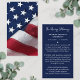 USA American Flag Memorial Funeral Prayer Card. This patriotic memorial prayer card features a United States of America Flag on front This American Flag funeral prayer card without photo is a treasured keepsake, military funeral services, and veteran memorial service or celebration of life. In Loving Memory Military Memorial American Flag Prayer Cards. Patriotic Sympathy Funeral Memorial Prayer Card