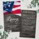 USA American Flag Memorial Funeral Prayer Card. This patriotic memorial prayer card features a United Staes of America Flag on a dark wood background. Front "In Loving Memory" Personalise this military funeral prayer card with your loved ones name & dates, and sentiment. Back ~ 'Afterglow' Poem, which can be personalised, please reach out if you would like a design with a specific poem other than. This American Flag funeral prayer card without photo is a treasured keepsake, military funeral services, and veteran memorial service or celebration of life. In Loving Memory Military Memorial American Flag Prayer Cards. COPYRIGHT © 2020 Judy Burrows, Black Dog Art - All Rights Reserved. Patriotic Memorial Funeral Prayer Card US Flag