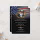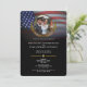 Celebrate your love and service with this patriotic wedding invitation featuring the American flag, a gold laurel frame, and your custom photo. Perfect for military couples or patriotic-themed weddings, this elegant black and gold design adds a formal and meaningful touch. Easily personalise with your names, date, and event details.