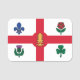 The flag of Montreal is a vibrant expression of the city’s diverse foundations. At its centre lies the red maple leaf, representing Canada as a whole, surrounded by four distinct emblems: the fleur-de-lis for the French, the rose for the English, the thistle for the Scots, and the shamrock for the Irish. These elements reflect the major communities that helped shape the city, standing together in unity and mutual respect. The clean white background and red cross form a perfect frame for this historical and multicultural design.