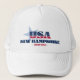New Hampshire trucker hat. A bold typography design with a blue star that highlights the US state of New Hampshire, its year of statehood in 1788, and the initials of the USA infused with the stars and stripes of the American flag. It makes a wonderful patriotic gift or souvenir.