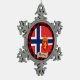 Patriotic Norway, buffalo plaid, Norwegian Flag Snowflake Pewter Christmas Ornament