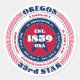 This sticker makes a wonderful souvenir or gift with this state-themed design. The bold, patriotic colour scheme and prominent display of the state name, "Oregon," evoke feelings of freedom, loyalty, and unity. Great for celebrations, national holidays, and patriotic-themed parties.