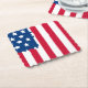 This paper drink coaster is shown in a patriotic July 4th flag print.
