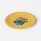 Crafted for both convenience and cultural pride, these paper plates showcase the iconic design of the New Jersey state flag. The flag features a field of buff (light yellowish-brown) with the state seal centred. The seal includes three ploughs, representative of agriculture, and a horse's head, symbolising strength and speed. The shield in the centre features three ploughs on a blue background, reflecting New Jersey's agricultural tradition and its status as one of the original Thirteen Colonies.