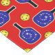Super fun red, white and blue pickleball graphic for an Independence Day pickleball tournament, or Fourth of July pickleball party. Blue pickleball paddles with white stars on a red background dotted with yellow pickleballs. In the centre of the tablecloth isan American flag made out of a blue paddle with white stars and red pickleball stripes on white. Colourful pickleball tablecloth for a 4th of July cookout, summer birthday party gift for your patriotic pickleball-loving friends.