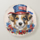 Patriotic Puppy 4th of July USA Independence Day Round Cushion