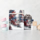 Red white and blue stars and stripes patriotic Christmas trees in the snow pattern for this year's Holiday parties and gifts. Seamless pattern to wrap even the biggest gifts for Christmas with out disrupting the scene - good for medium to smaller packages The design is 6inches by 6 inches -