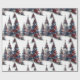 Patriotic Red White and Blue Christmas Trees Wrapping Paper