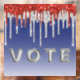 A bold and eye-catching abstract design featuring cascading glitter drips in red and white on a blue background. The sparkling texture and fluid paint effect create a modern patriotic look that feels festive, artistic, and energetic. Glitter drips are simulated in the artwork.