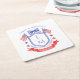 This patriotic wedding coaster design features a watercolor crest with a light red white and blue patriotic crest with American flags and a blue bow. You can personalize with your monogram, wedding date and names.