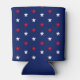 Patriotic red white navy blue stars pattern fun Can Cooler.