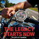 This distinctive watch face features a prominent American flag waving in the background, behind a detailed black motorcycle. Large, stylised wings extend from the motorcycle's side, with additional red and blue feathered wings at the bottom. The overall design emphasizes patriotism and a love for motorcycling, with clear silver numbers and watch hands for timekeeping.