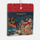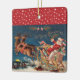 Christmas tree ornament with Patriotic Santa Claus flying through the night sky on his sleigh with American Flags waving - from a WWII design.