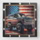 Patriotic Semi-Truck American Flag Square Wall Clock