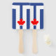 Each fan in this stylish set showcases the official Toronto city flag—a bold white stylised “T” inspired by the twin towers of City Hall, set against a rich blue background with a vivid red maple leaf at its base. The clean, geometric design highlights both Toronto’s unique urban identity and its integral place within Canadian heritage.
