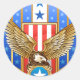Patriotic shield for the USA with the red white and blue stripes, white stars, gold trim and the bald eagle front and centre. Looks great on tshirt, hat, bag,whatever.