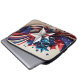 The sleeve is made of nice feeling material and seems very durable. I'm not sure how easy it'll be to clean, but the construction seems sound and the fabric is quick thick. I also like the double zipper. The printing is lovely and appears durable. The white on black contrast is nice, and the design very elegant.