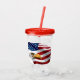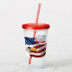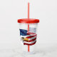 This acrylic tumbler with it 's own lid and straw has an image of the USA Flag and eagle graphic print.